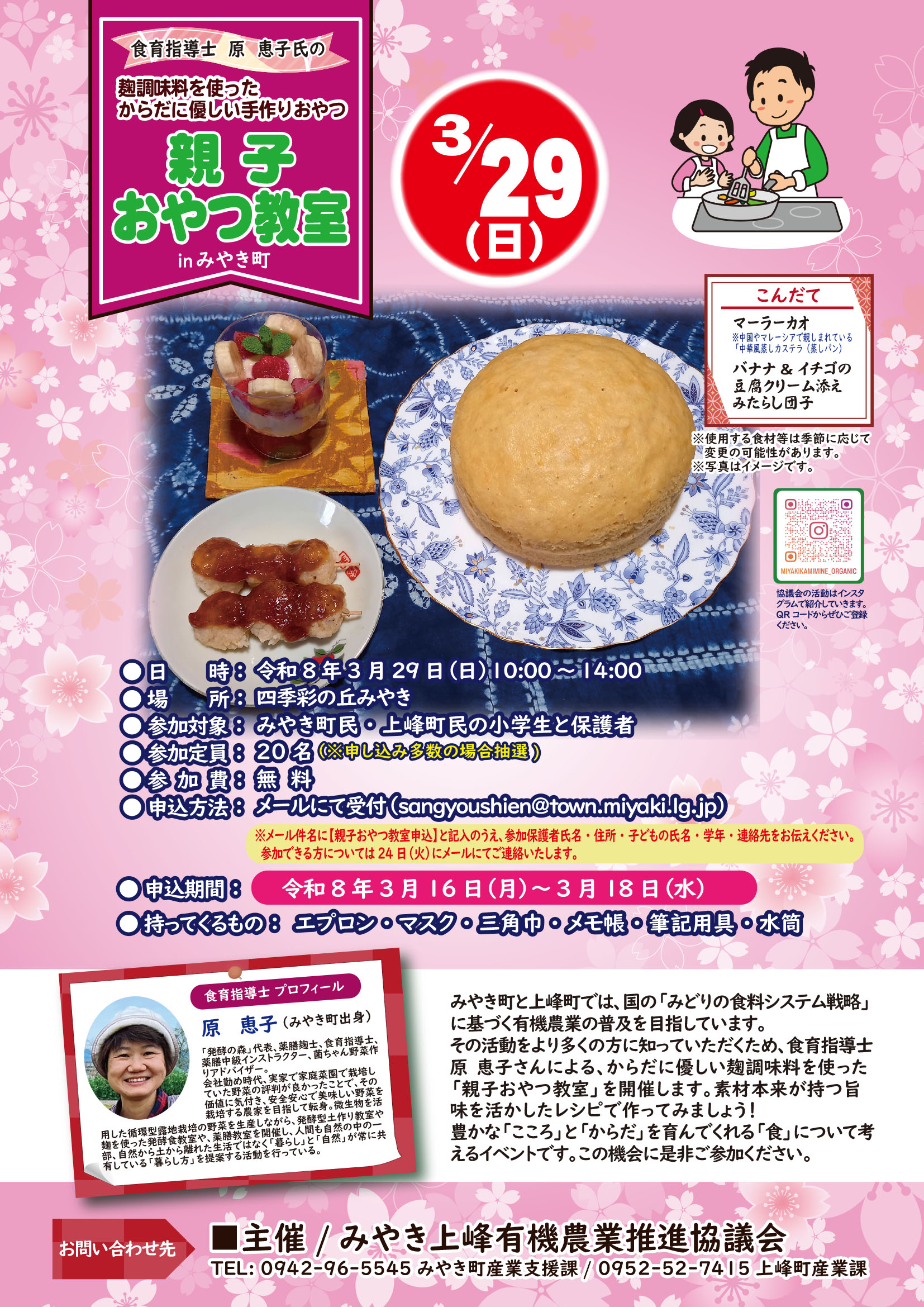 親子おやつ教室〜麹調味料を使ったからだに優しい手作りおやつ〜(主催:みやき上峰有機農業推進協議会)