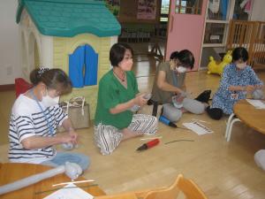 参加された親子は1組でしたが、今回は児童館を見学に来られたみやき町の民生児童委員の方々も一緒に作られました。