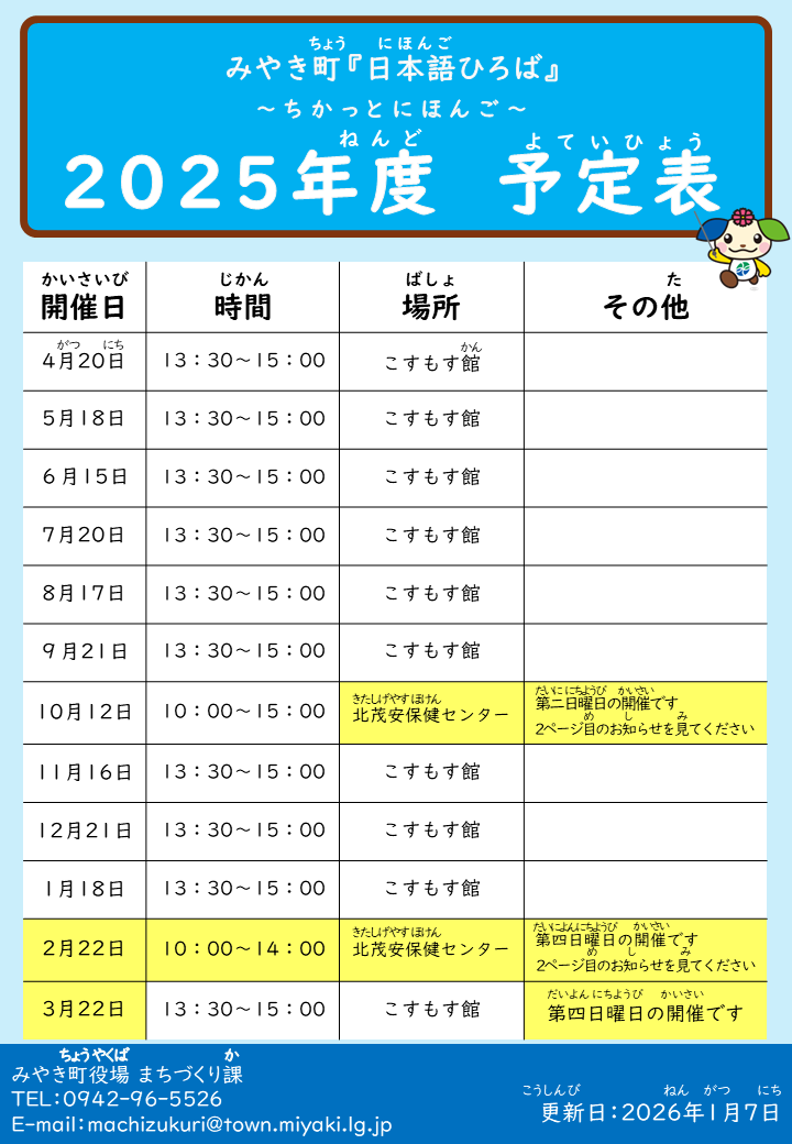 本町では、日本語教室を毎月第3日曜日に開催しております。