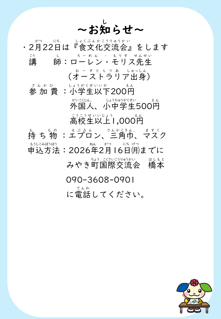 共通言語は「やさしい日本語」です。みやき町にお住いの外国人の方のご参加をお待ちしております。